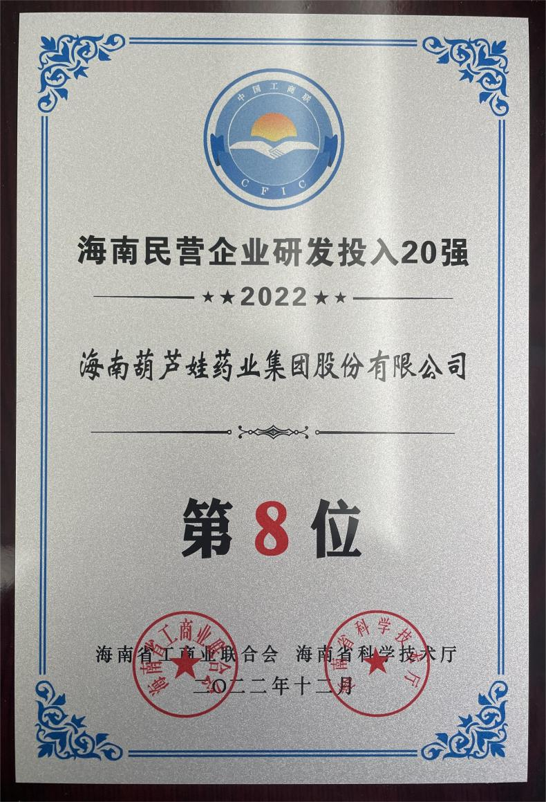 12月23日,2022海南民营企业50强和研发投入20强发布会在海口举行。会上发布了“2022海南民营企业50强”“2022海南民营企业研发投入20强”榜单和分析报告。赏金船长药业再次荣登两榜,在海南民营企业50强榜单中位列第25位,较去年上升8位,这也是公司连续三年登榜;在海南民营企业研发投入20强中位列第8位,较去年上升7位。