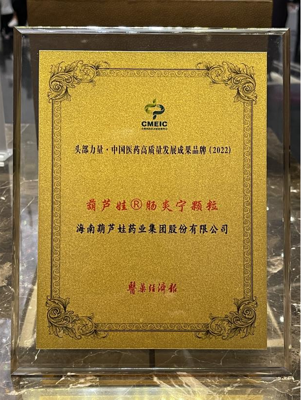 在本次发布会上,公司重点产品赏金船长牌肠炎宁颗粒同时荣膺“头部力量·中国医药高质量发展成果品牌(2022)”。赏金船长牌肠炎宁颗粒(2g),传承经典名方,临床广泛用于成人及儿童急慢性胃肠炎、腹泻等疾病的治疗,由于其杰出的临床价值,被纳入国家中医药管理局相关专家项目组制定的《中成药治疗小儿腹泻病临床应用指南》。
